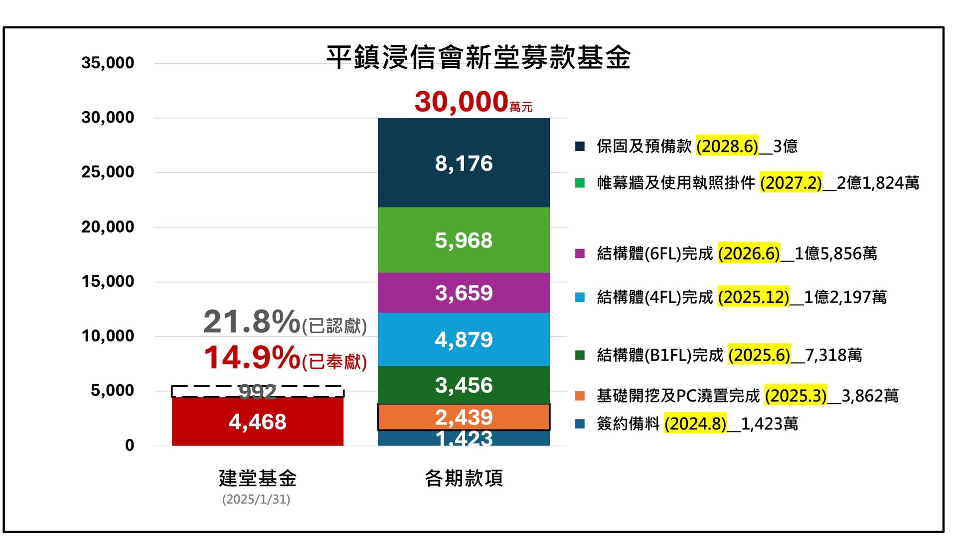 平鎮浸信會在面對人數成長與空間不足的挑戰下,看見未來發展的需要。回顧過去,從家庭聚會、宋屋佈道所到現今的平鎮浸信會,這將近六十個寒暑、半個世紀,神的愛從來沒有離開過我們。然而,隨著人數的增加,目前的場地已經不足,使得一些活動和聚會變得困難。因此,我們期望建造能夠容納千人以上的教會崇拜空間,並滿足各種活動與團契的擴展需求。